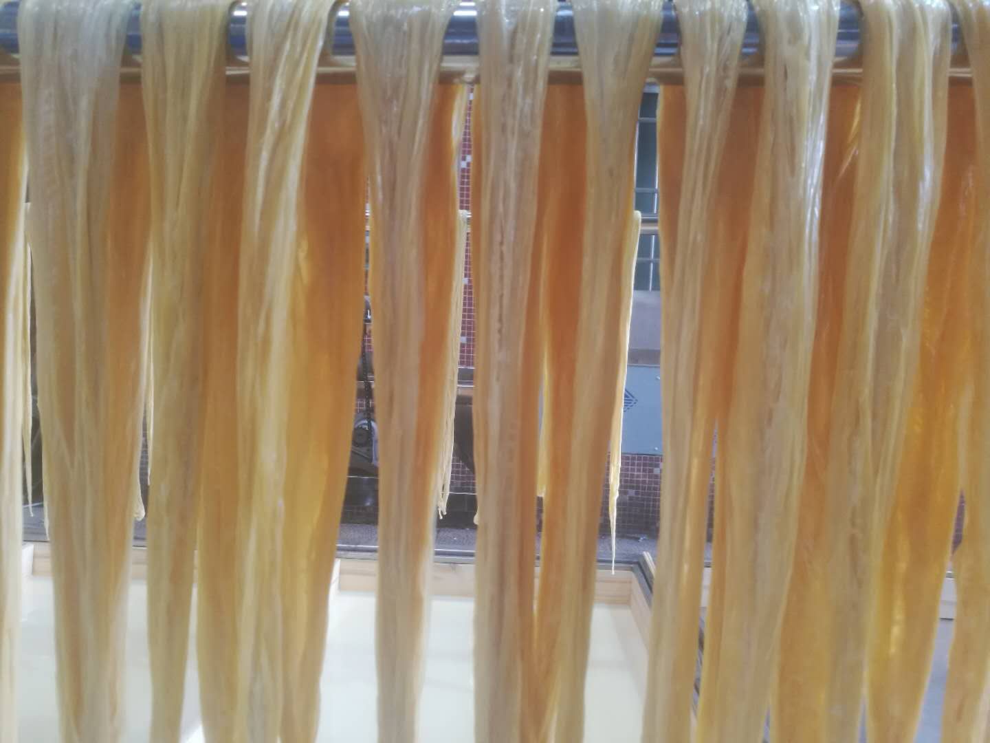 “一洗豆、二浸豆、三打漿、四隔渣、五擰漿、六煮漿、七鏟邊、八提膜、九掛灶、十曬晾”,遵照傳統(tǒng)古法,盡可能手工制作,還原腐竹本味。豆?jié){煮沸時(shí),上層凝固的部分成條的挑起來(lái),晾干后就成了腐竹,用水泡開后就可以拿來(lái)烹飪了,吃著又鮮又滑。現(xiàn)在的人多數(shù)是用腐竹機(jī)來(lái)半自動(dòng)化制作腐竹,效率高。